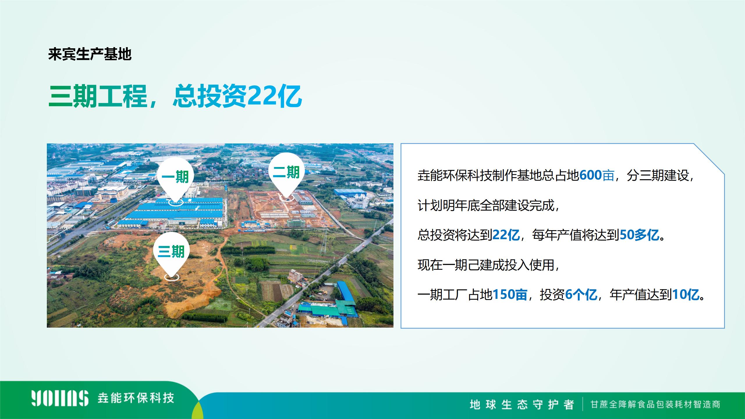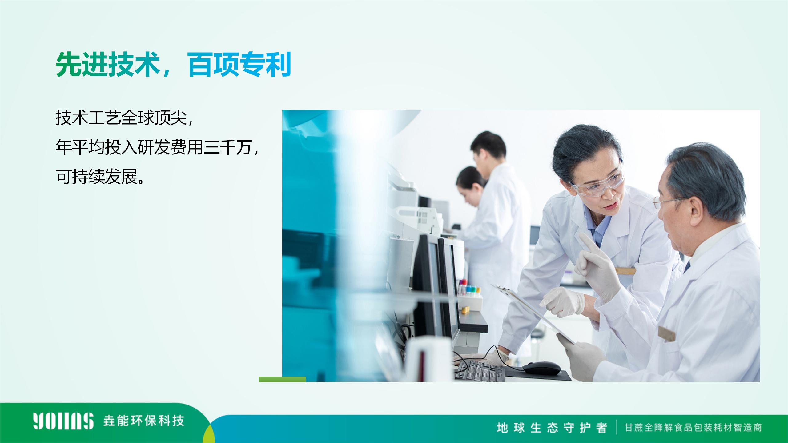 垚能環保科技擁有100項專利,廣西生產基地生產環境及質量管理體系是目前行業中唯一蕕得英國零售商協會BRC一A A認證的生產工廠,且通過了lSO、BRC、FDA、LFGB、QS等國內外權威認證。生產基地總占地600畝,總投資將達到22億,每年產值將達到50多億。